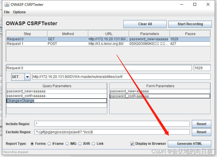 单击“Start Recording”,开启CSRFTester的检测工作,这样以后我们所有访问的URL以及参数都会被记录下来