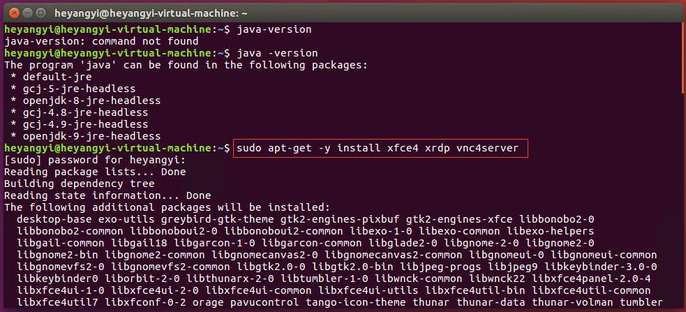 sudo apt-get -y install xfce4 xrdp vnc4server