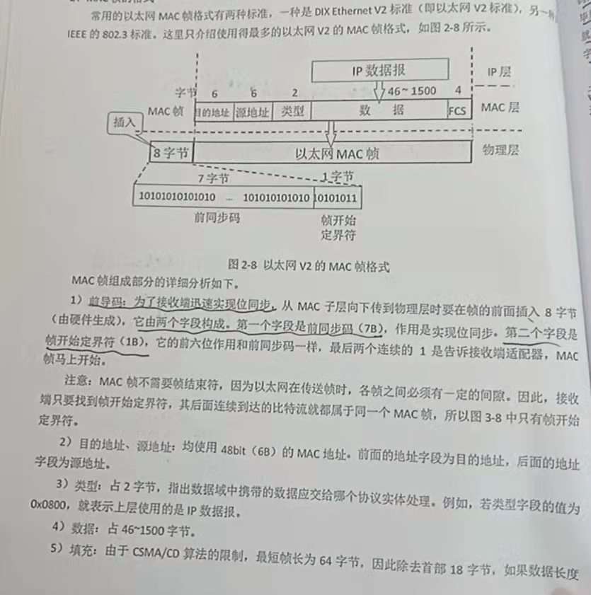 1)DIX Ethernet V2是世界上第一个局域网产品(以太网)的规约;