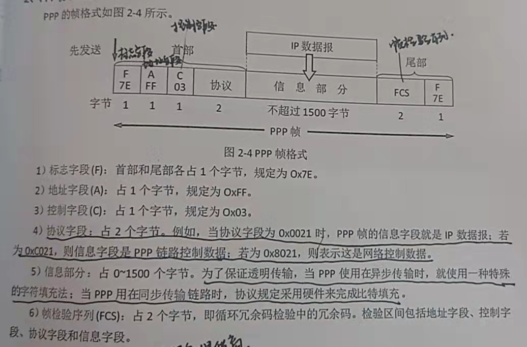 b.不负责的功能:纠错(只负责检错)、流量控制(TCP负责)、序号(PPP是不可靠传输,无需对帧编号)、多点线路(PPP是点对点的通信方式)、半双工或单工(PPP只支持全双工链路);