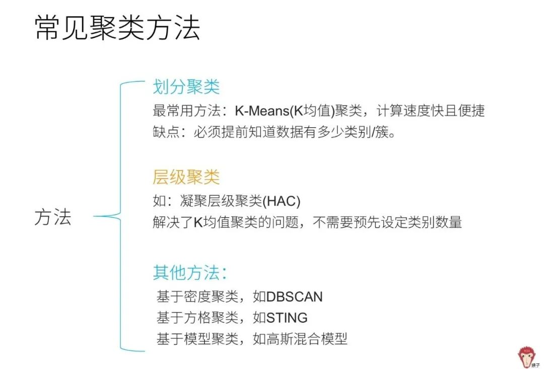 K均值和凝聚层级是常用的聚类方法。