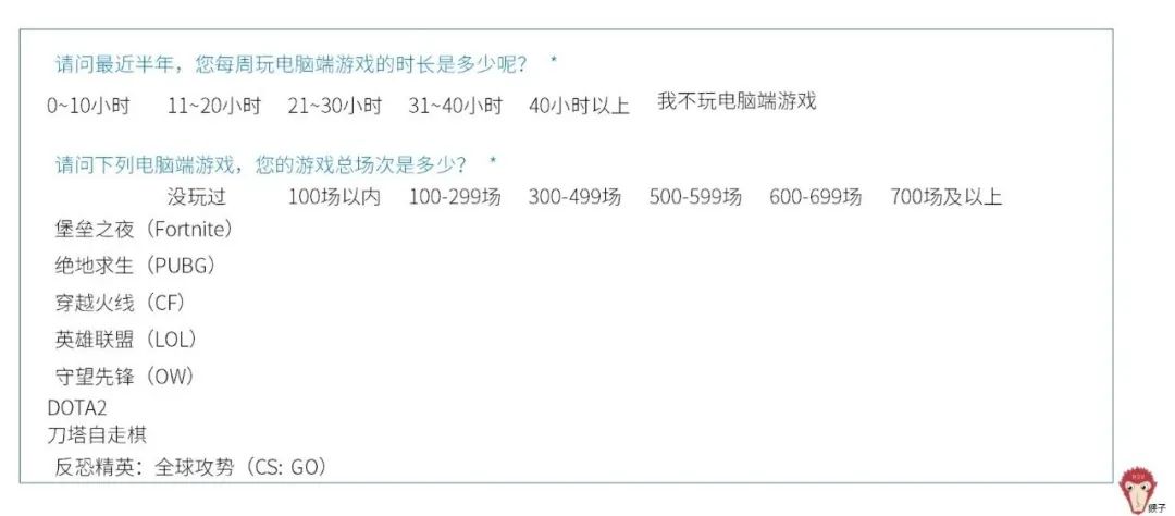 内测招募问卷多数由用户主动参与填写,用户对游戏及内测都有一定兴趣。且最终参与内测的用户会获得酬劳,因而相比普通问卷,内测问卷可以具有复杂性和困难度。