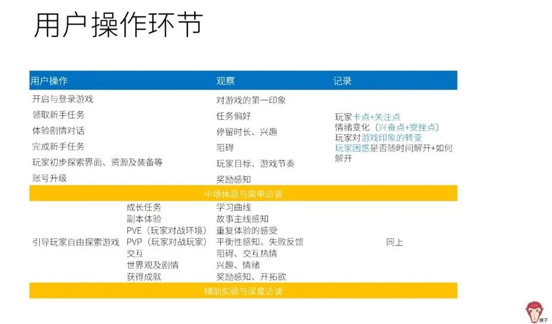 此前我们通过后台数据/问卷调查+电话访谈筛选了玩家,通过观察法、量表记录、眼动实验等途径测试了玩家的游戏过程及体验。