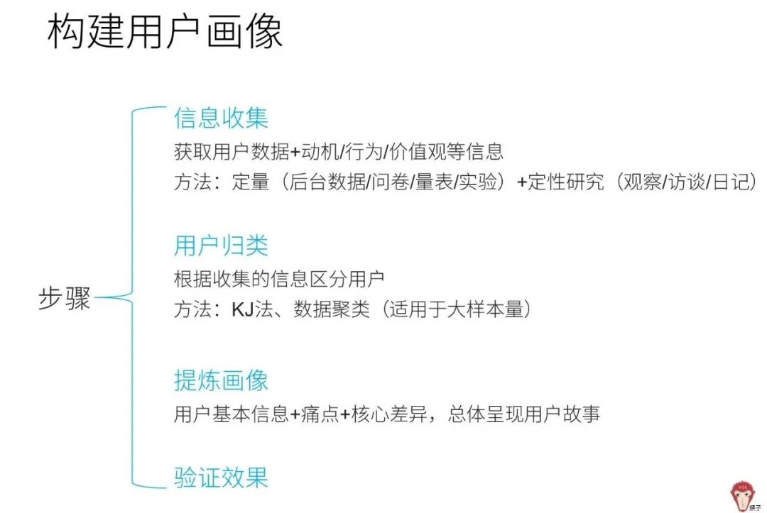 构建用户画像需要首先通过定性+定量调研,获得目标用户数据及信息;