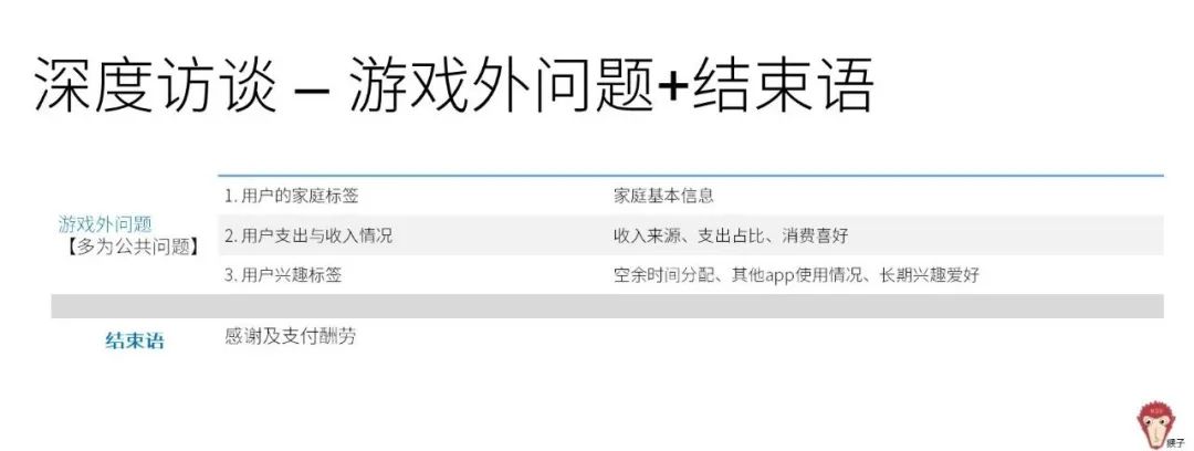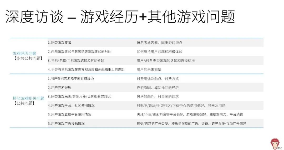 深度访谈是访谈人员和玩家之间进行时间较长的(通常是30分钟到1小时),针对相关问题一对一方式的谈话。