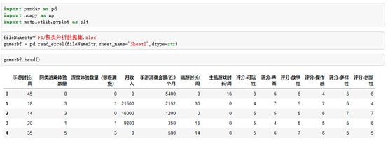 数据集字段包含手游时长、同类游戏体验数、月收入、游戏评分等多个变量。