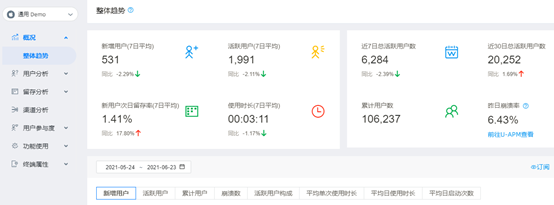 (例:友盟-移动应用数据监控及分析界面)