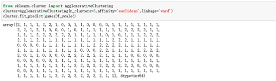 引入层级凝聚聚类算法(HAC),输出结果包含0,1和2,分别代表三个簇。