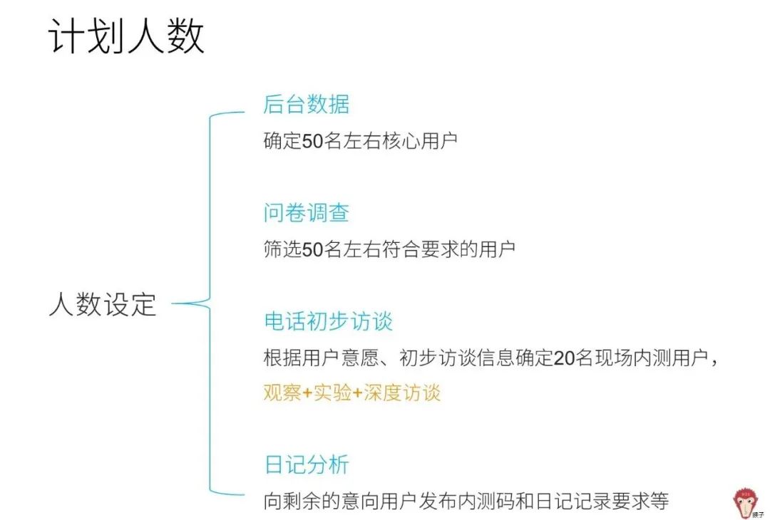 因此我们通过电话访谈筛选20名用户(分两天参与内测,同时需要预留备选名额),剩下的用户根据其意愿邀请参与线上测试及日记记录。两类用户都给予相应报酬。
