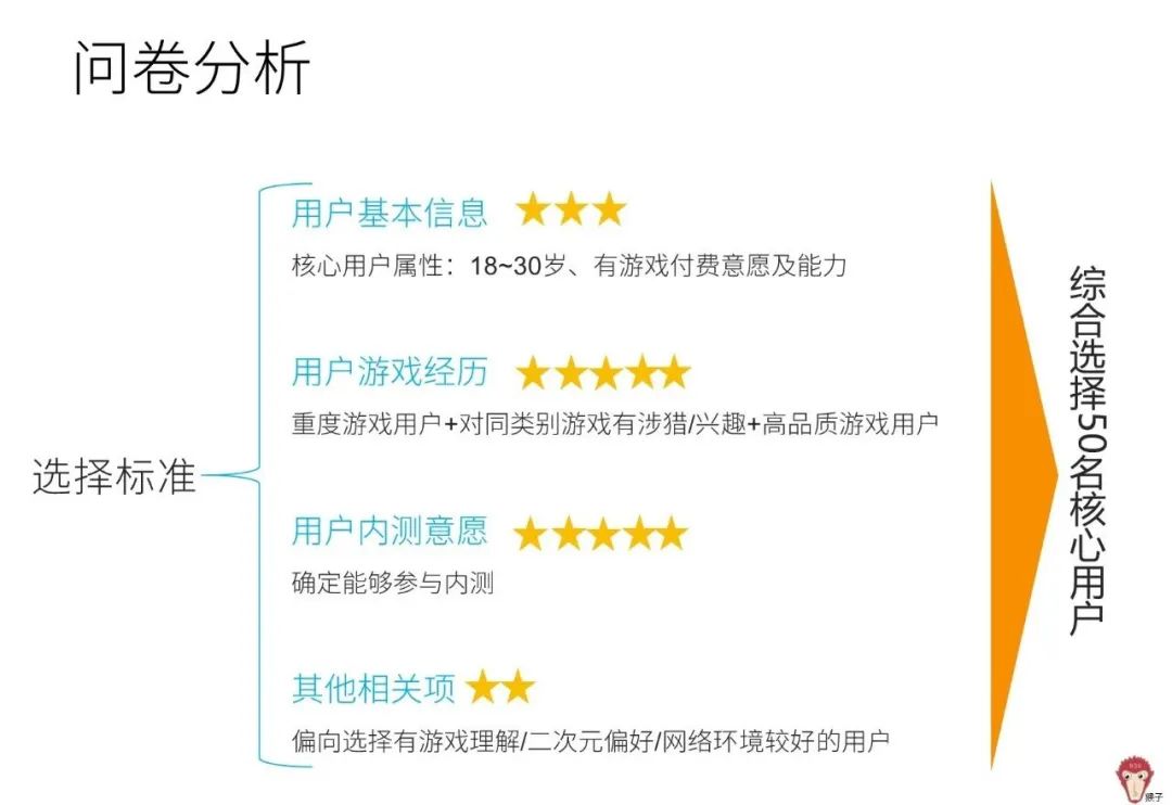 先确定核心用户群体(借助后台数据和问卷调查),邀请参与内测,通过内测展开核心用户画像分析(通过观察法、访谈法和日记分析等),并根据用户需求优化游戏。