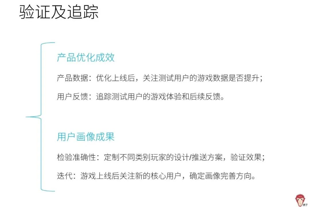 另一方面,在后续游戏功能设计/传播/用户服务等方面促进画像的使用,验证效果并迭代升级。