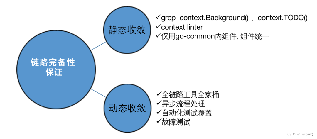 链路完备:需要确保调用链路完整且染色标不能中断,保障方案分静态收敛和动态收敛两种策略,基于业务验证占据80%+工作量,此验证过程必须尽可能的自动化,为此我们引入链路检测工具集“trace_toolset”,自动进行链路完备性检查。