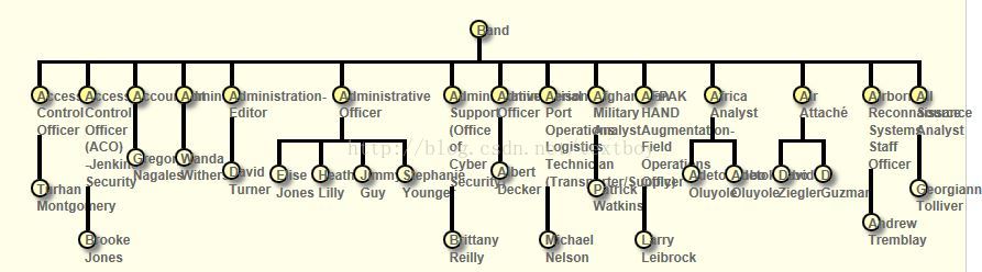 注:上图与官方图有样式区别,是因我修改原代码中的css以适应多分支的情况,由图可见当分支太多时,orgchart显示起来还是太拥挤了。(官方图如下)