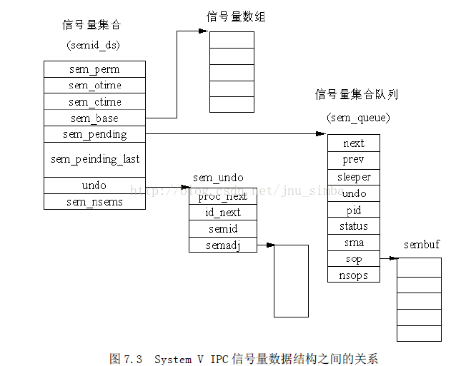 Linux 中信号量是通过内核提供的一系列数据结构实现的,这些数据结构存在于内核空间,对它们的分析是充分理解信号量及利用信号量实现进程间通信的基础。