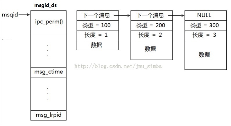 Linux 中的消息可以被描述成在内核地址空间的一个内部链表,每一个消息队列由一个IPC 的标识号唯一地标识。Linux 为系统中所有的消息队列维护一个 msgque 链表,该链表中的每个指针指向一个 msgid_ds 结构,该结构完整描述一个消息队列。