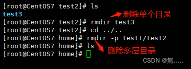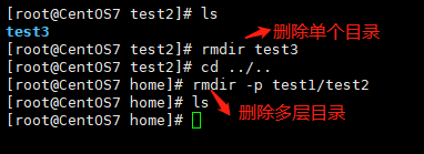 rmdir只能删除空目录。如果要删除多层目录,请加-p参数