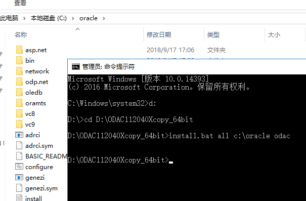 解压ODAC112040Xcopy_64bit 最好是放到磁盘跟目录,不要有带中文目录名