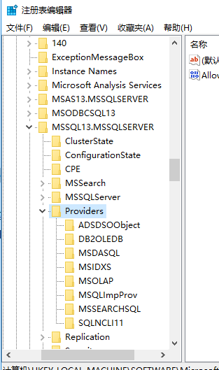 HKEY_LOCAL_MACHINE\SOFTWARE\Microsoft\Microsoft SQL Server\MSSQL13.MSSQLSERVER\Providers