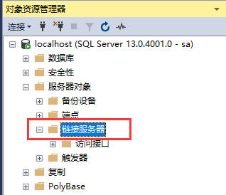 在SQL Server Management Studio 新建链接服务器(如出现无法新建,可能是权限不够)