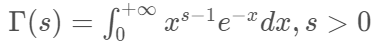 $\Gamma(s)=\int_{0}^{+\infty}x^{s-1}e^{-x}dx,s>0$ (1)