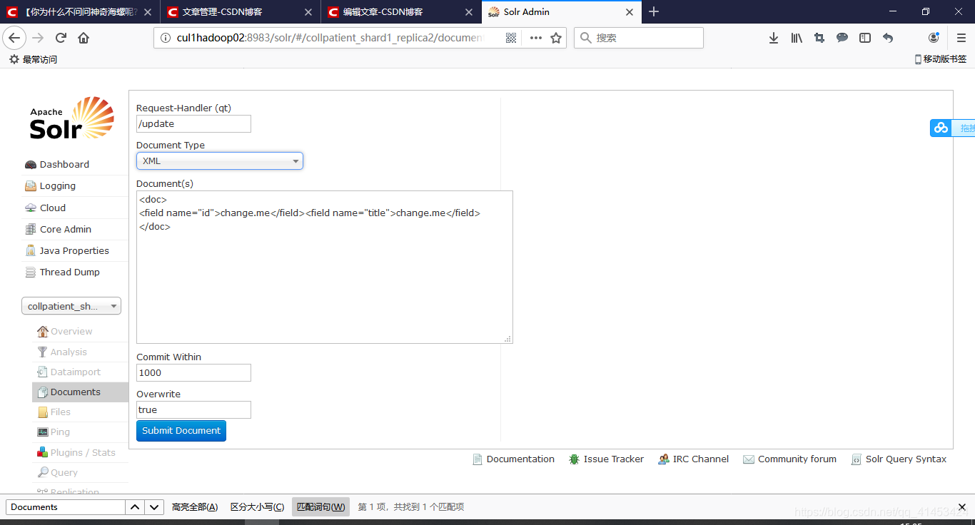 三、Solr管理界面的Documents菜单功能