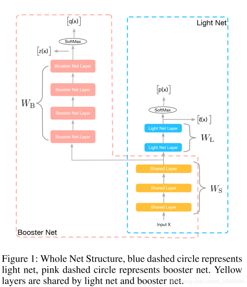 x是输入,y是标签,Ws是共享参数,Wl是light net的参数,Wb是booster的参数
