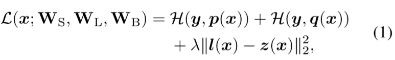 H是普通交叉熵损失,两个交叉熵加一个监督损失