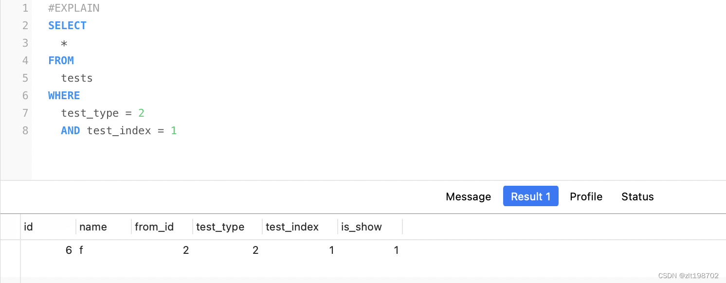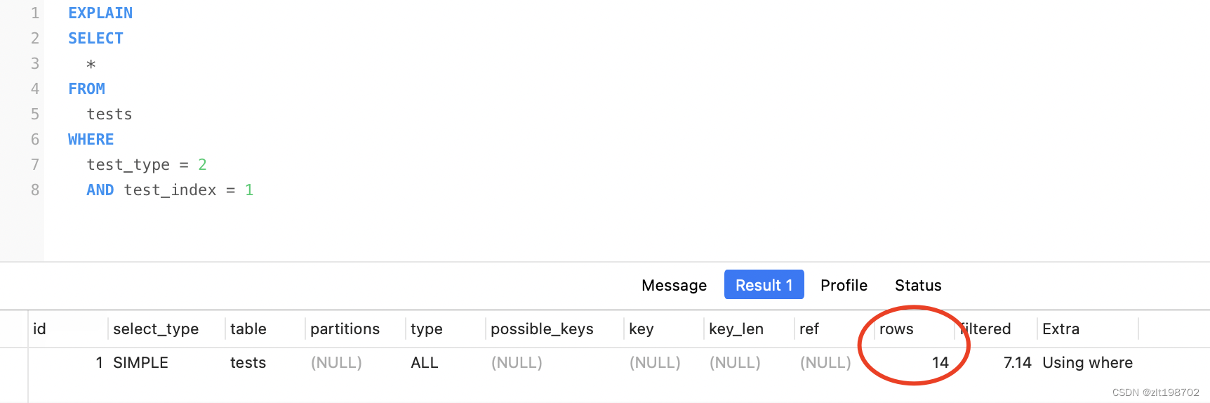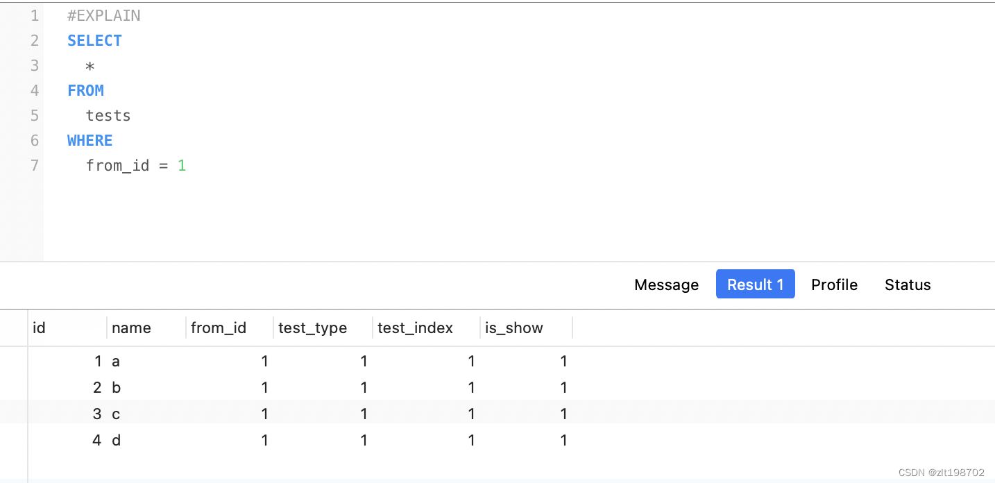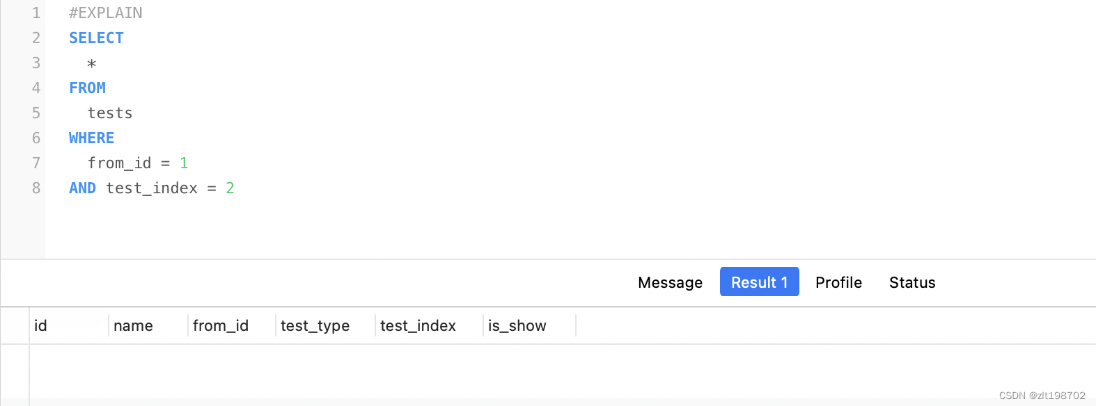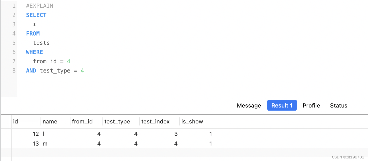 数据库中,from_id的索引为a,这个时候看到,索引仅仅命中了i(a),但是没有命中c。所以i(a,c)的查询,并非没有走索引,而是仅仅命中i(a)。