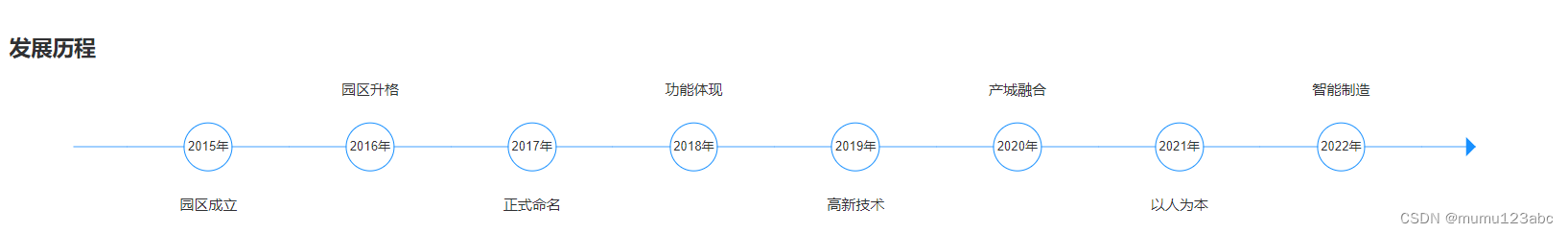 <div style="width:100%;"><div class="timeaxis"><div class="box1 li"><div class="line"></div></div><div class="boxs li" v-for="item in list" :key="item.index"><div class="line"></div><div class="circular">{{ item.year }}</div><div class="desc">{{ item.condation }}</div></div><div class="box1 li"><div class="line"></div><divstyle="width: 0;height:0;border:10px solid transparent;border-left-color: #1890FF;position: absolute;right: -10px;top: 50%;transform: translateY(-50%);"></div></div></div></div>
