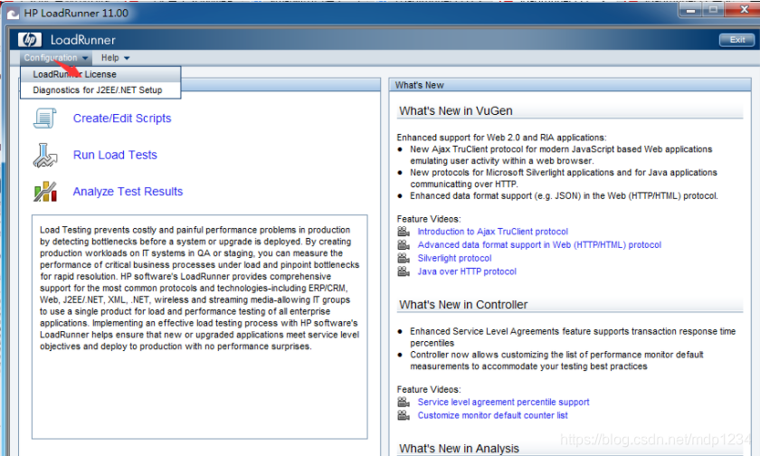 4、 打开LoadRunner后,选择Configuration->LoadRunner License