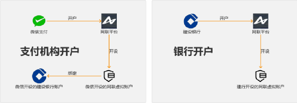 微信公司需要到网联平台开设个虚拟账户,绑定其一张实体银行卡。且系统的支付业务接口全部从原来和银行的直接转到与网联平台进行统一对接。