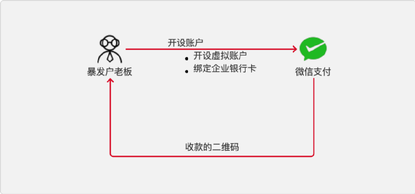 发现没有,没有银联什么事情。从用户支付到暴发户老板收款,是那么的简单。