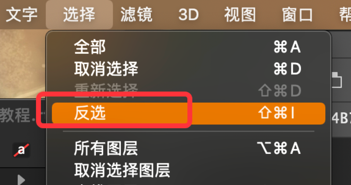 - 菜单栏点击【选择】-【反选】,如图
