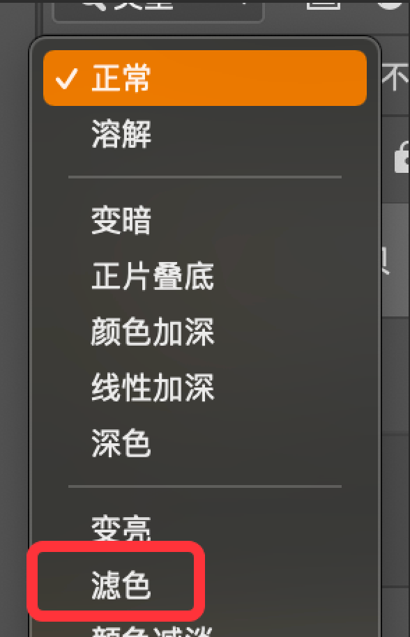 - 窗口右下角的图层工具栏,修改“正常”—>“滤色”,如图