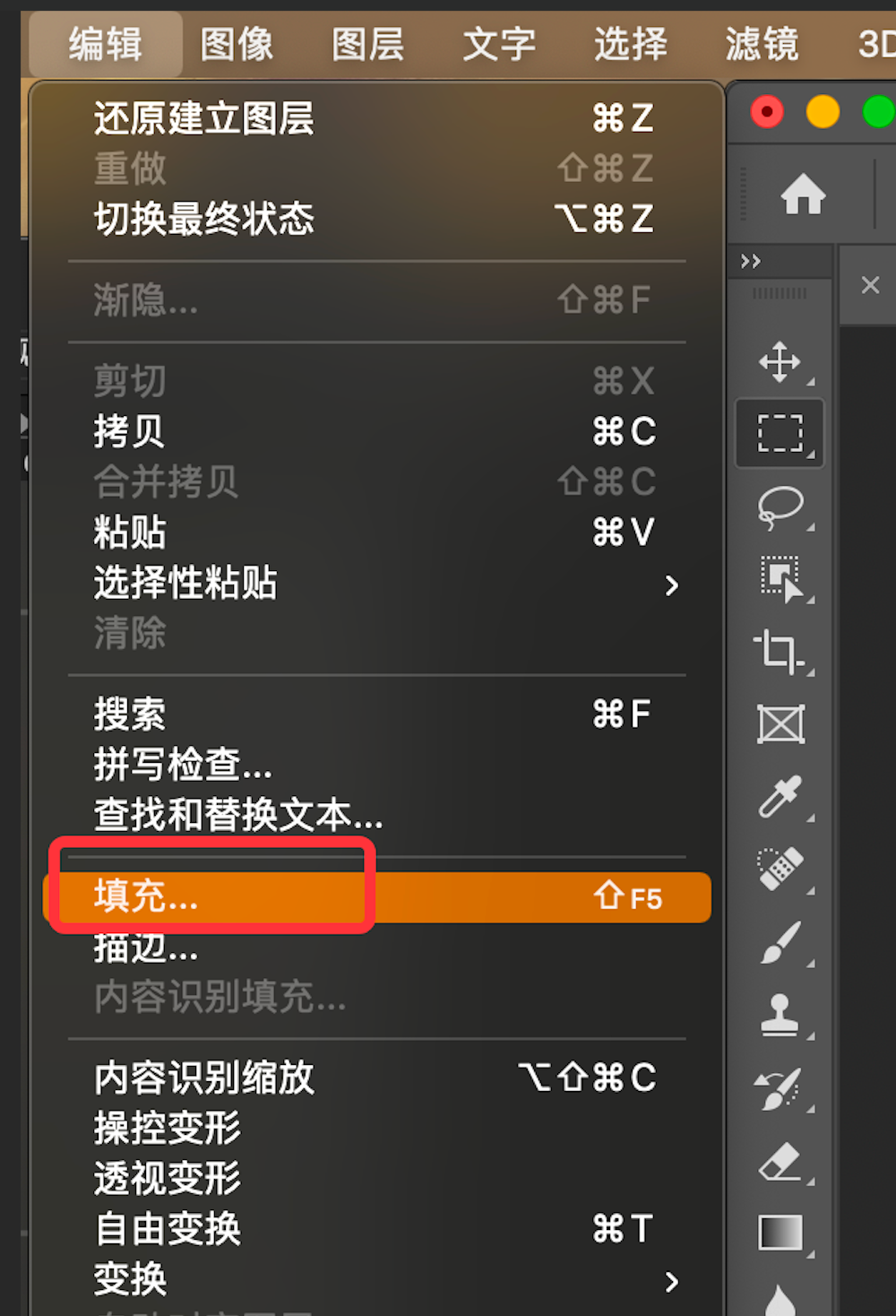 - 点击菜单栏的【编辑】-【填充】