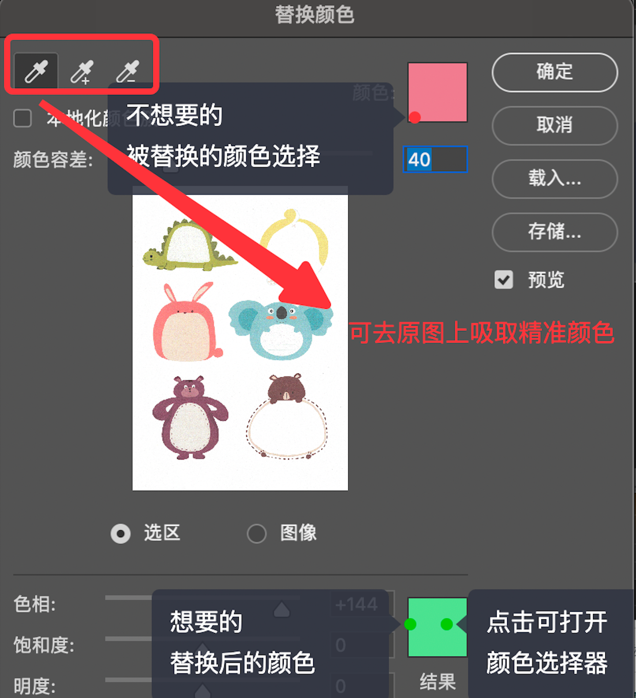- 选择需要替换的颜色