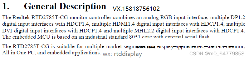 RTD2785T 支持VGA+2HDMI+2DP转eDP&LVDS 2K分辨率