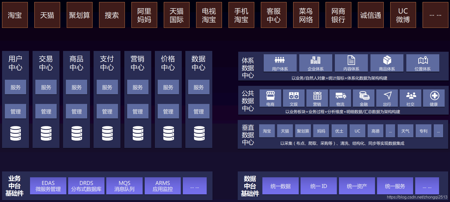 1、是阿里拜访芬兰的一家公司—SupperCell,只有不到10个人,每个员工创造估值3.74亿 2、淘宝遇到的问题:淘宝和天猫是两套完全独立的两套系统,但是却都包含了商品、交易、评价、支付、物流 3、中台之前类似的思想 SOA(方法):面向服务的架构(SOA)是一个组件模型,它将应用程序的不同功能单元(称为服务)进行拆分,并通过这些服务之间定义良好的接口和协议联系起来。接口是采用中立的方式进行定义的,它应该独立于实现服务的硬件平台、操作系统和编程语言。这使得构件在各种各样的系统中的服务可以以一种统一和通用的方式进行交互。