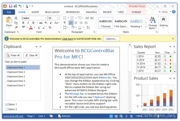 BCGControlBar Library for .NET 是 100% 托管代码工具包,用 C++/CLI 编写,面向 Microsoft .NET Framework 2.0 或更高版本。该库包含许多高度可定制、完全可设计的组件,使您能够创建最复杂的用户界面。该库包括完全可自定义的 Office 2000/XP/2003/2007/2010/2013/2016 样式工具栏和菜单、VS 2005/2008/2010/2015 样式的停靠栏、Office 2007/2010/2013/2016 样式的功能区、自动隐藏控制栏、MDI 选项卡、灵活的可视化管理器等。
