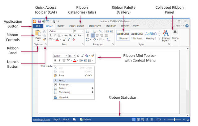 “功能区”控件由 Microsoft 在 Office 2007 中引入。这不仅仅是一个新的控件 - 它是一个新的用户界面意识形态。功能区控件将传统的工具栏和菜单替换为选项卡式组(类别)。每个选项卡在逻辑上拆分为面板,每个面板可能包含各种控件和命令按钮。此外,功能区控制提供智能布局,最大限度地利用可用空间。例如,如果面板已被拉伸并且没有位置显示所有可用控件,则它将成为菜单按钮,可以在弹出菜单上显示子项。 | |