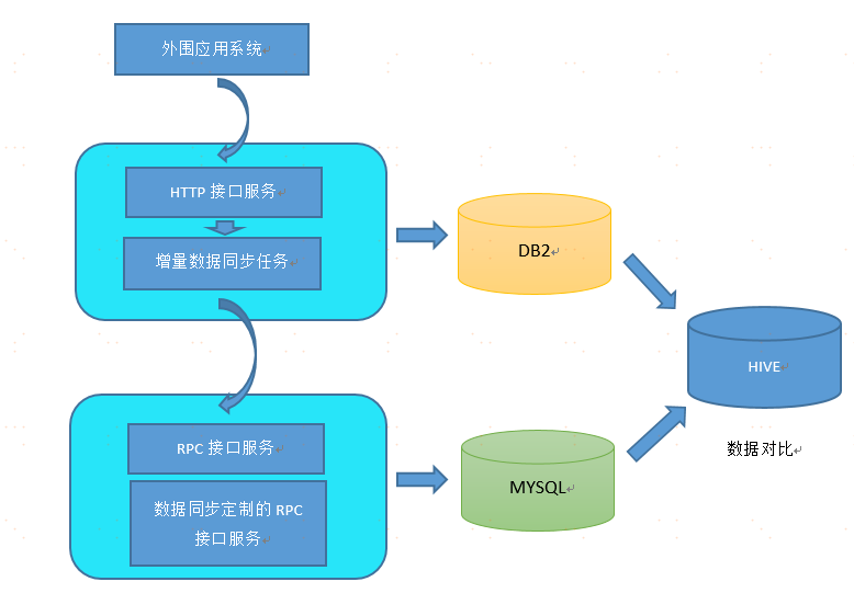 - 待增量数据处理完后,将新老系统中的数据抽取到hive中进行对比分析,验证新系统中数据是否有错,业务逻辑是否有问题。需要经过多轮对比并修复。数据差异较大,问题较大时需要全部重新迁移。