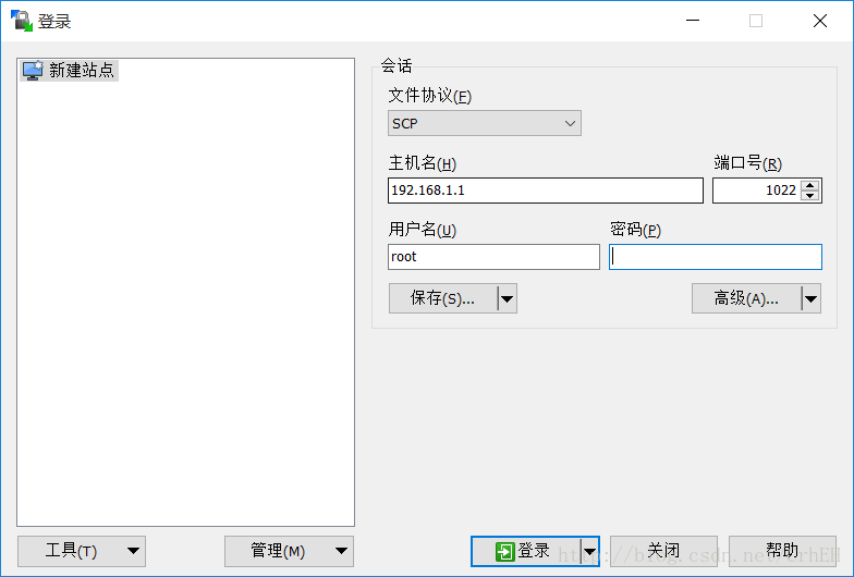 将下载的Dr.com插件用WinSCP传到路由器/tmp文件夹下(WinSCP的使用方式上面已经阐述过)。