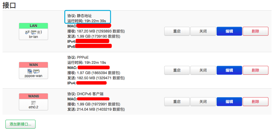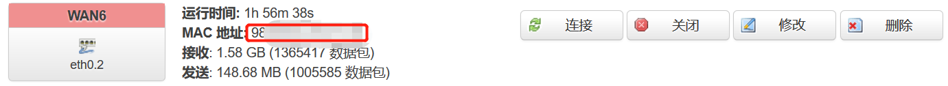 - 点击 Network(网络)-> Interfaces(接口),查看LAN的MAC地址并复制