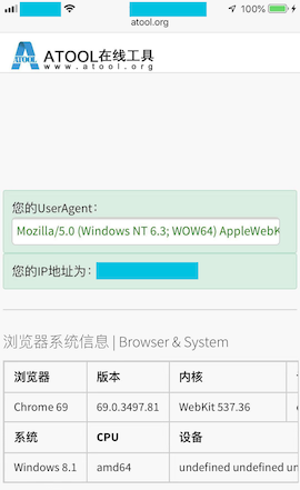 http://www.atool.org/useragent.php,查看结果是否为Windows NT 6.3,而不是android或者iphone。注意关闭为屁嗯后再测试!注意关闭为屁嗯后再测试!注意关闭为屁嗯后再测试!