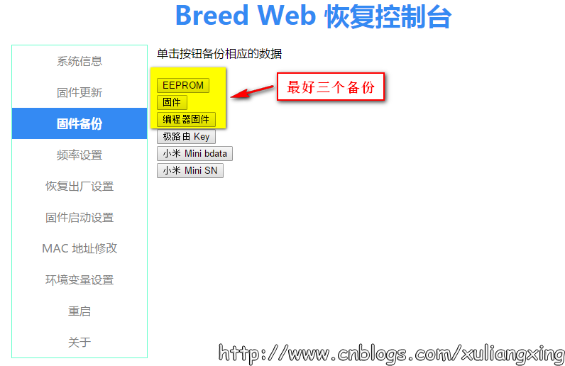 为了保险起见,首先进行固件备份,以备不时之需。严重强烈建议极路由用户刷Breed后,第一次进入后台就备份一次,这样以后想要重新刷回官方系统时原有功能不会受到影响,仍然能够访问云平台。