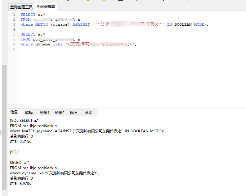 FULLTEXT搜索与LIKE搜索对比: