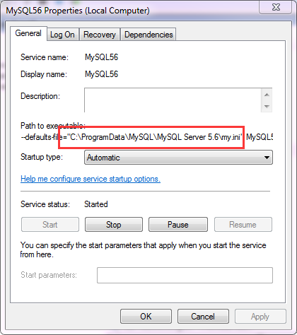 找到你的 MySQL服务,右键Properties,找到你的my.ini所在的路径