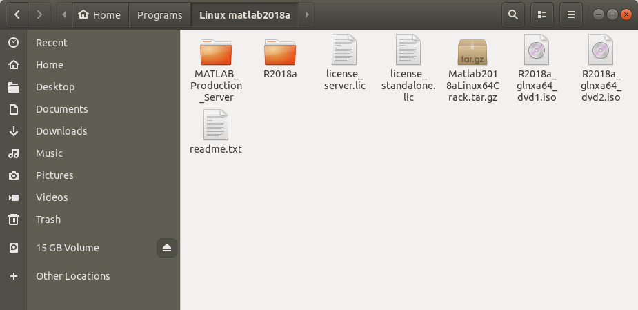 $ tar -xzvf Matlab2018aLinux64Crack.tar.gz
