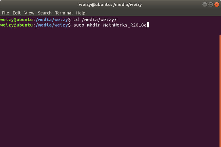 $ sudo /media/weizy/MathWorks_R2018a/install